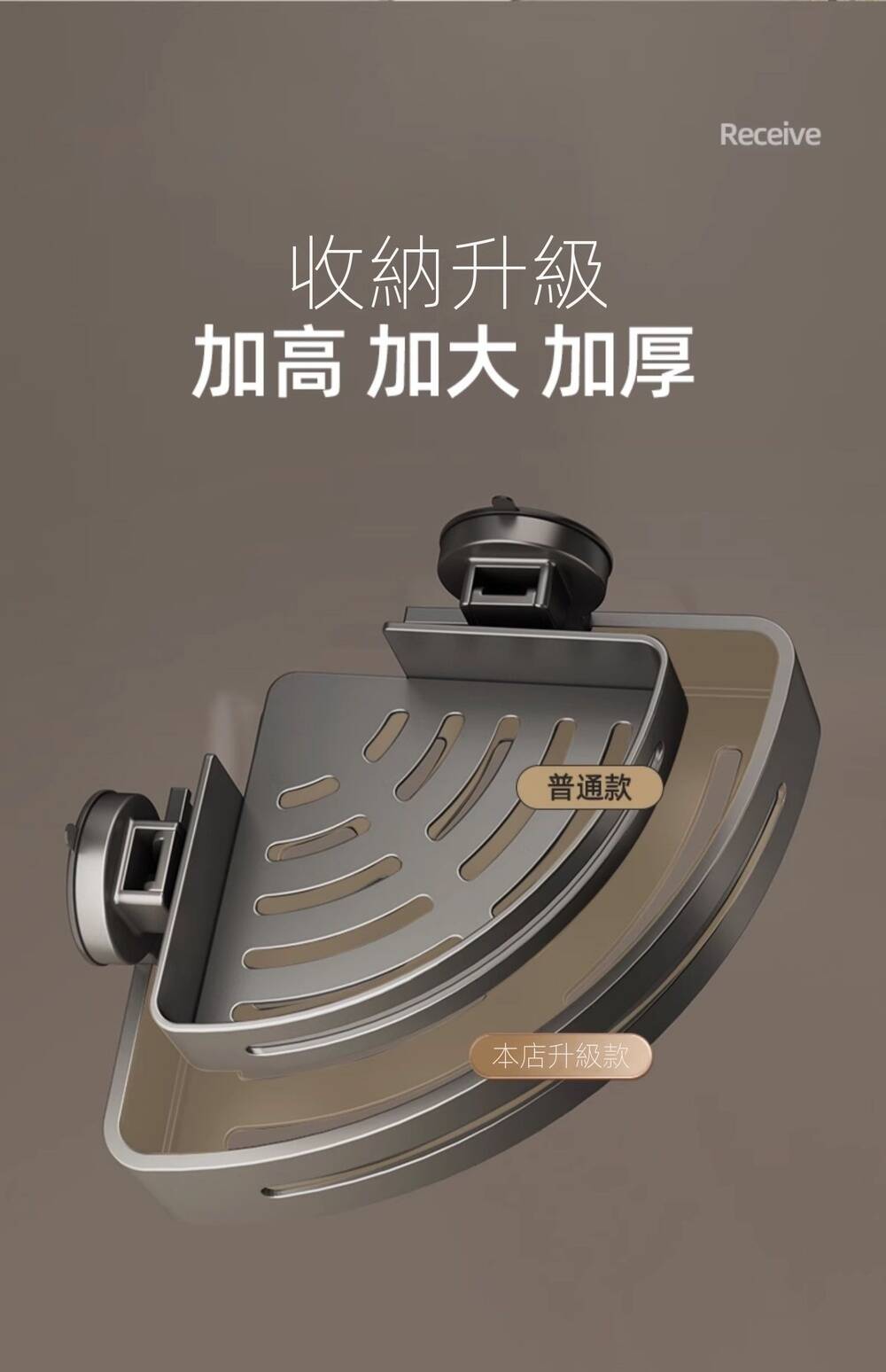 5分鐘前自帶吸盤,可隨時移動重復使用的置物架 免打孔廚房浴室衛生間三角置物架多用途壁掛收納架毛巾架 - 【超夯下殺】買一送二,共三入組 NT$998