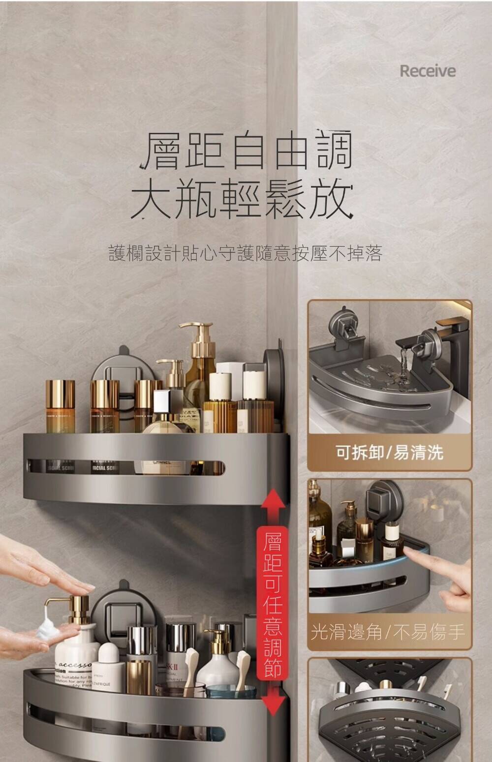 20分鐘前自帶吸盤,可隨時移動重復使用的置物架 免打孔廚房浴室衛生間三角置物架多用途壁掛收納架毛巾架 - 【超夯下殺】買一送二,共三入組 NT$998